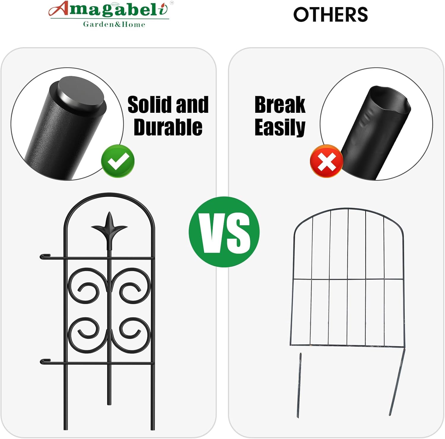 - DECORATIVE&STYLE:Our garden fencing has a nice Victorian look.It is nice for both protection and decoration.Choose these metal fence panels with aesthetic appeal that complements the overall aesthetics of your garden.These real metal decorative fences will stand the test of time as your garden border. And what makes it stand out is its decorative function.The black color won't fade over time.The exquisite design makes it perfect as a decorative garden fence for flower beds, or a garden edging border to make your yard full of romantic atmosphere.