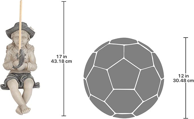 Design Toscano Big Catch Fisherwoman Nellie Girl with Fishing Pole Garden Statue, Medium 17 Inch Tall, Cast Stone Resin, Two Tone Stone Finish