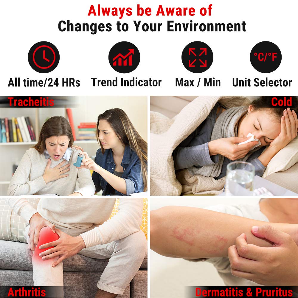 - 【Precision You Can Trust】With precise temperature and humidity readings within +/-2°F and +/-2 to 3%RH, this thermometer indoor outdoor optimizes indoor comfort, improves air quality, and cares for plants more effectively