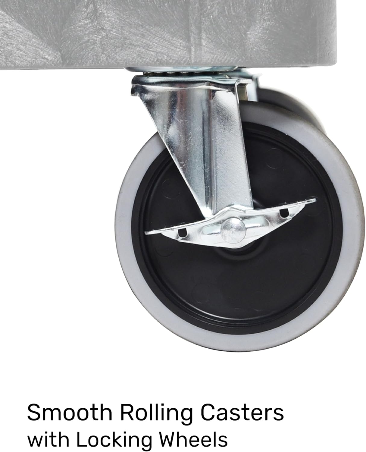 - High-Quality Construction for Lasting Durability: Designed with rounded corners and built from high-density polyethylene (HDPE), this gray utility cart features two spacious shelves with 2.5” deep tubs for secure storage. The 19.5” clearance between shelves accommodates larger items with ease.