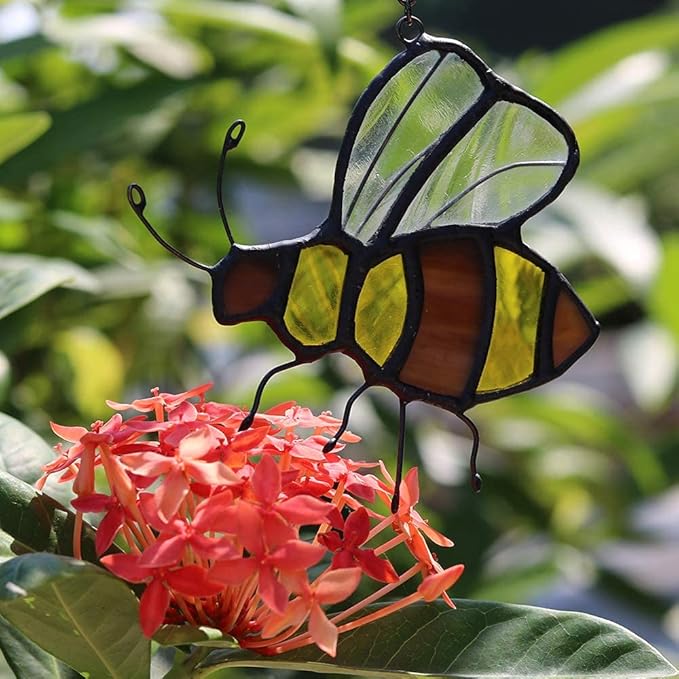 - 【Perfect Bee Gifts And Bee Decoration】 This multicolored stained glass bee decorations handmade hanging ornaments would be a great decoration on window, car, wall, patio, garden and living room. Also, it can be used for party favors, Honey bee gifts for any occasions and everyday use.