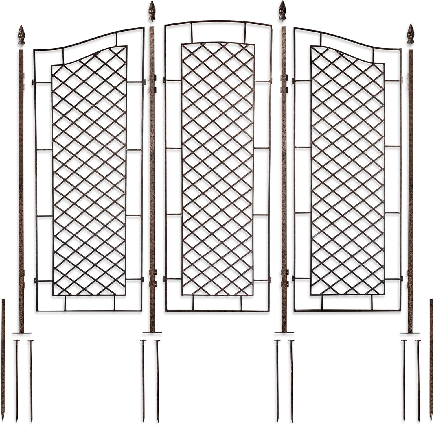 - Handcrafted with powder coated finish – Weather resistant, this trellis stands strong on its own, adding majesty to your garden even without a plant on it. With its charcoal brown powder-coating, a faux hand-rubbed finish has been applied for aesthetic, rustic appeal. Ideal for spring and summer to support flowering vines, and in fall or winter, to add architectural grandeur to your lawn decor.