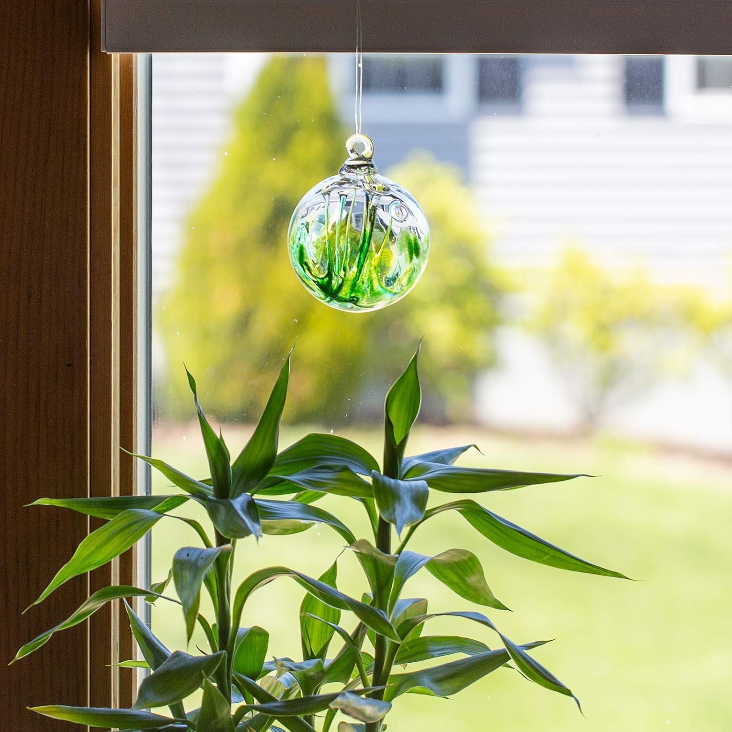 Luke Adams Glass | 3" Mini Glass Tree of Life | Handmade Ornament | Hanging Garden Gazing Ball | Indoor Outdoor Home Décor | (Adventurine Green)