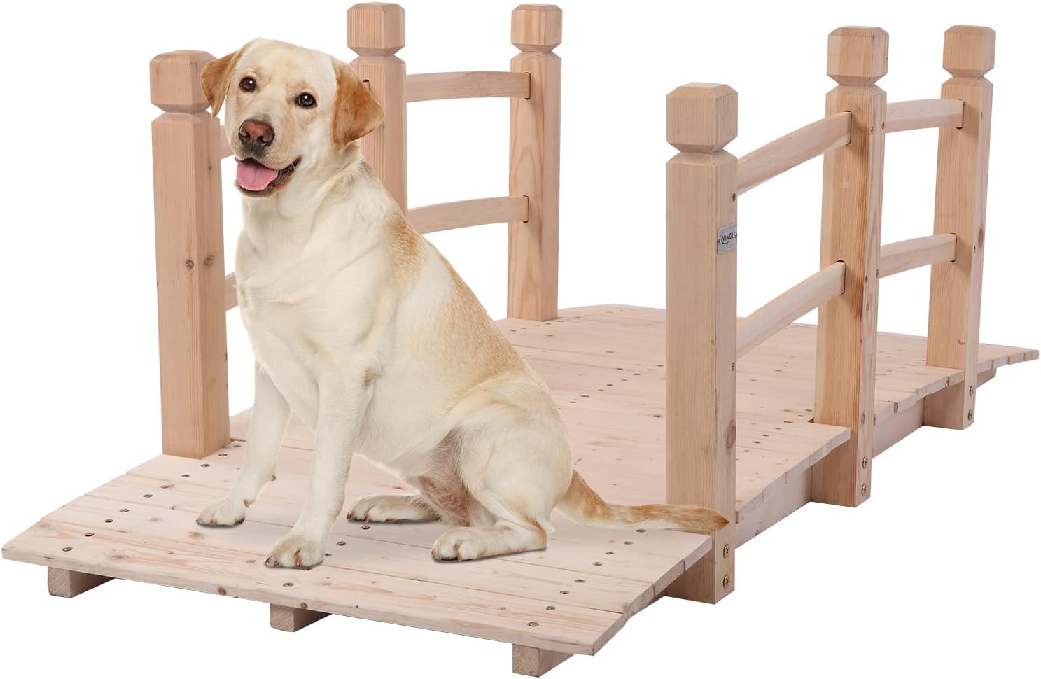 - ✔ [Decorative Bridge] Natural finished fir wood makes it a beautiful additional walkway to your garden, yard, creek or farm. Welcome to DIY your bridge by painting it with any color you like.Dimension: 59"(L) x 28"(W) X 21"(H)