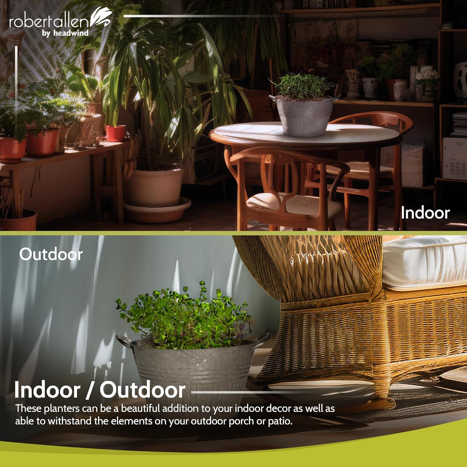Headwind Round Galvanized Tub Planter with Handles – 12 Inch Lightweight Metal Planter with Drainage Hole – Galvanized Steel Tub for Plants - Metal Flower Pot by Robert Allen