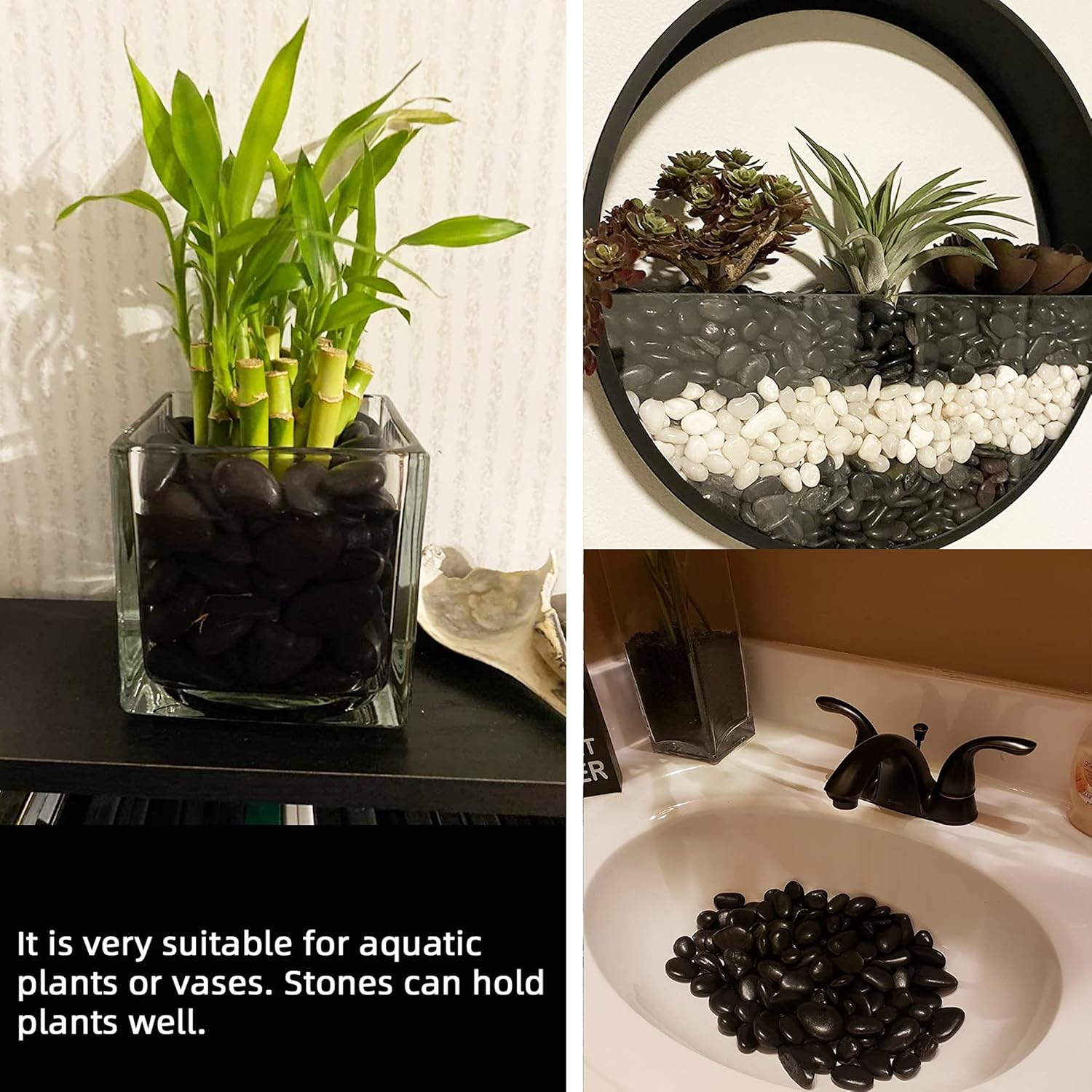 - 🌑【WIDE USES】You can use these black polished stones to design or decorate your plants, aquariums, vases, glass containers, fountains, walkways, water features, miniature landscapes, and fairy-tale garden stones.It is perfect for home decor and a creative interior and exterior design.