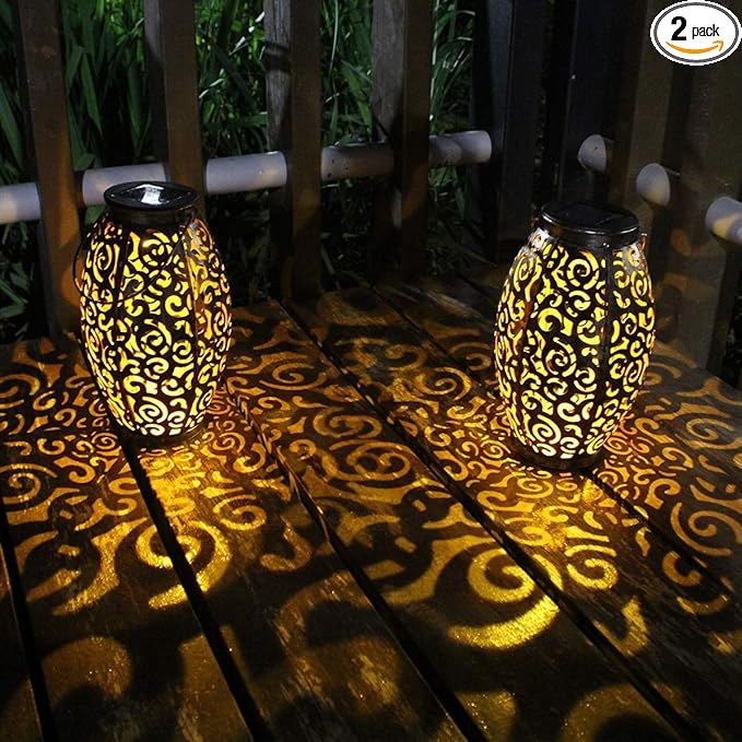 - [Gorgeous Christmas gift] This outdoor Upgraded 15 Lumens solar lantern which has US DESIGN PATENT & COPYRIGHT is designed to embellish your patio.IF YOUR LANTERNS DON'T WORK OR HAVE OTHER ISSUES ,PLS TELL US. WE WILL SEND SOME FREE NEW BRAND TOP REPLACEMENT TO YOU.Its attractive hollowed-out pattern and subtle glow lights up your patio in a special way, beautiful visual effects create romantic ambience. It's a perfect decoration to your patio, courtyard or garden.It would be nice garden gift!