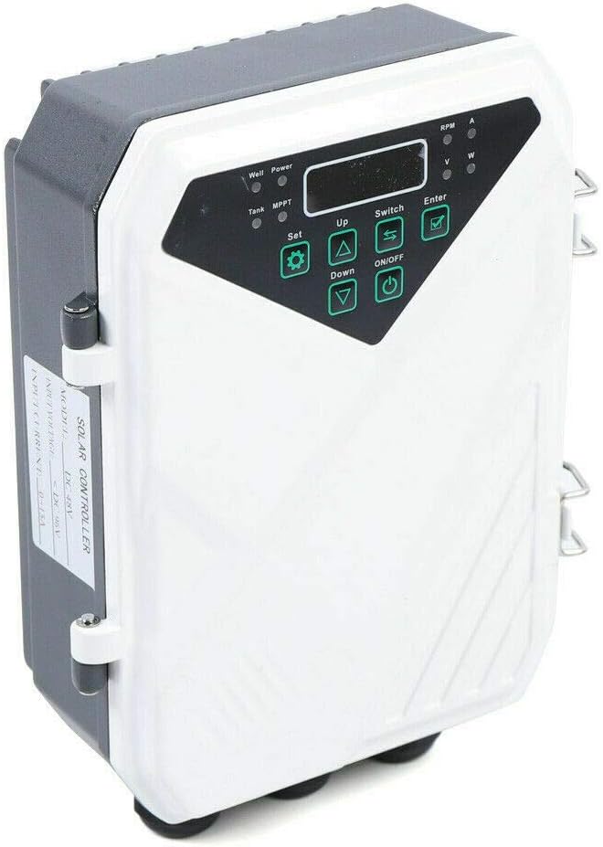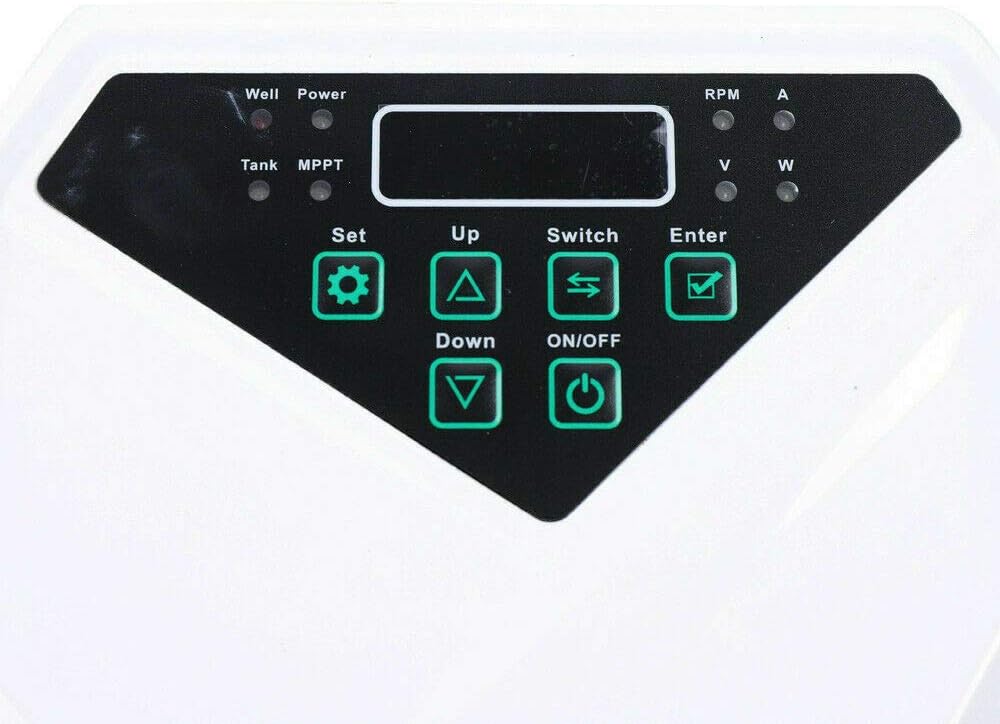 - 【MPPT CONTROLLER】The solar water pump controller drives the high efficient brush-less DC pump motor, utilizing the latest MPPT technology to ensure maximum flow is delivered under all light conditions. It also protects the submersible pump from frequent start up in low light conditions, overheating and running dry.