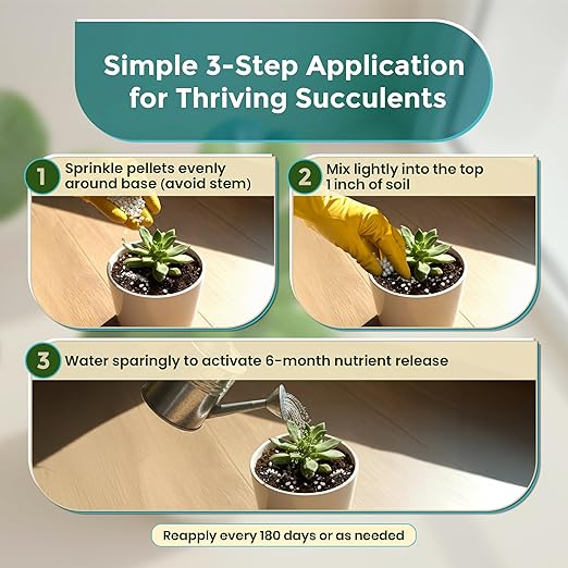 - π± 6 MONTH TIMED RELEASE - A single application of our succulent plant fertilizer lasts up to 180 days, thanks to its controlled release. This significantly minimizes waste and the need for upkeep.