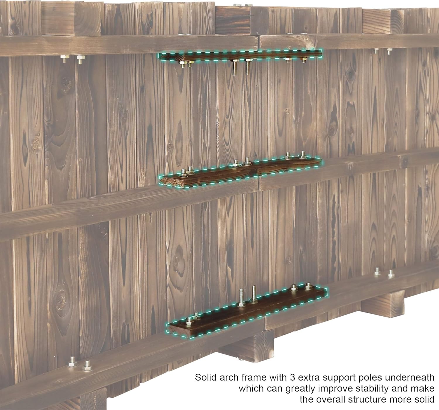 - 【Solid Construction】Solid arch design follows the scientific principle and is strong enough to hold up to 450 pounds,your family members and pets will play on the bridge without any worries!The middle part of the arch bridge bottom is reinforced with 3 extra wood boards,which can greatly improve stability and make the overall structure more solid.The footbridge is constructed with high-quality hardware fitting which is rust-resistant and anti-loosening to enhance service life of garden bridge