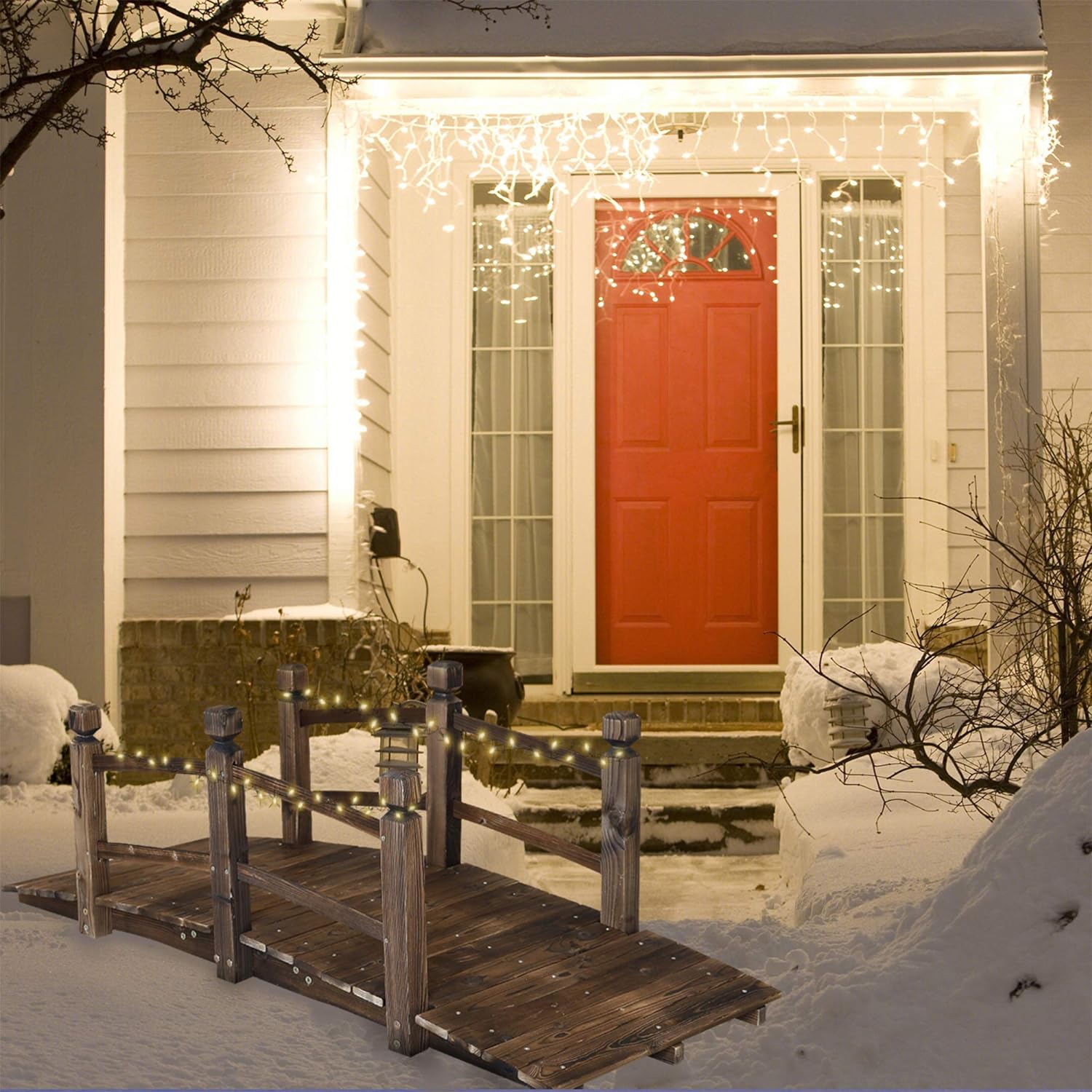 - 【Solid Fir Wood】Different from the ones made of laminate materials,our garden bridge is made of strong and premium fir wood which is sturdy,durable and weather-resistant.0.55" thickness deck is widened and thickened to offer strong weight capacity!Natural wood is eco-environmental and 100% safe for your kids and pets!The fir wood has been carbonized to resist cracking,splitting,chipping and peeling.Carbonized treatment makes the bridge can be used outdoors for a long time and keep intact well