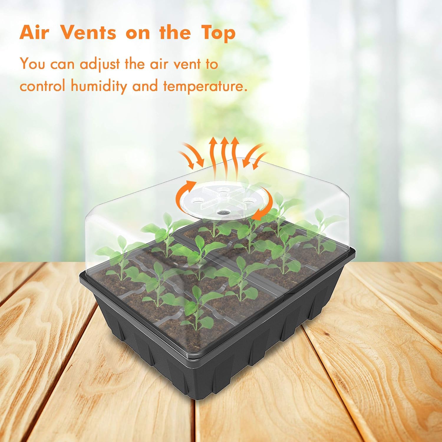 - Vented Humidity Dome - Our seed starter kit comes with an adjustable humidity dome, allowing you to easily control the humidity and temperature levels for optimal seed germination. With ventilation holes, it is easy to control the airflow and maintain the ideal growing environment for your seeds.