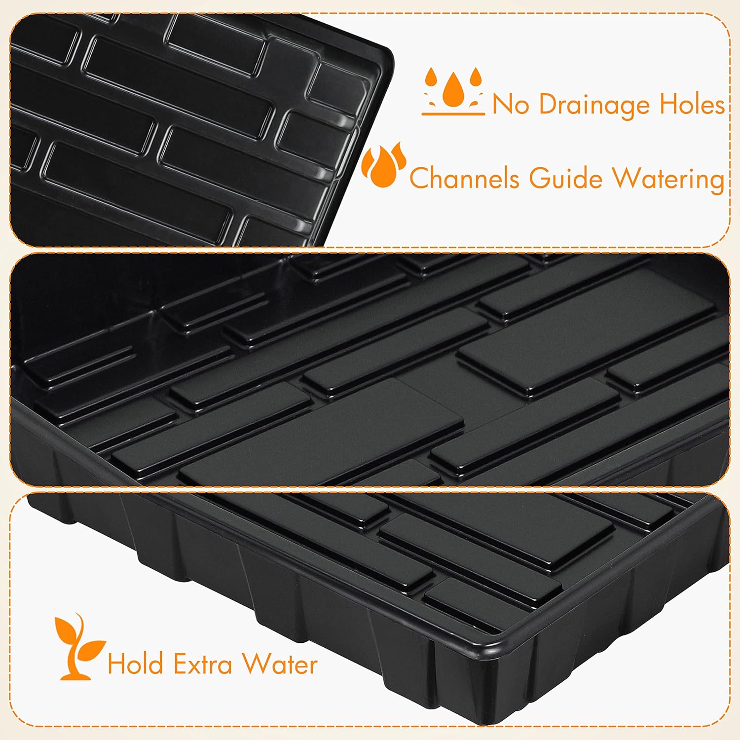 - Watering Guide - Each propagation tray has several channels for easy watering and accommodating drainage which enables plants benefit from the extra water to absorb humidity. There are no holes so you can water from the bottom, and plants are able to develop healthy root systems.