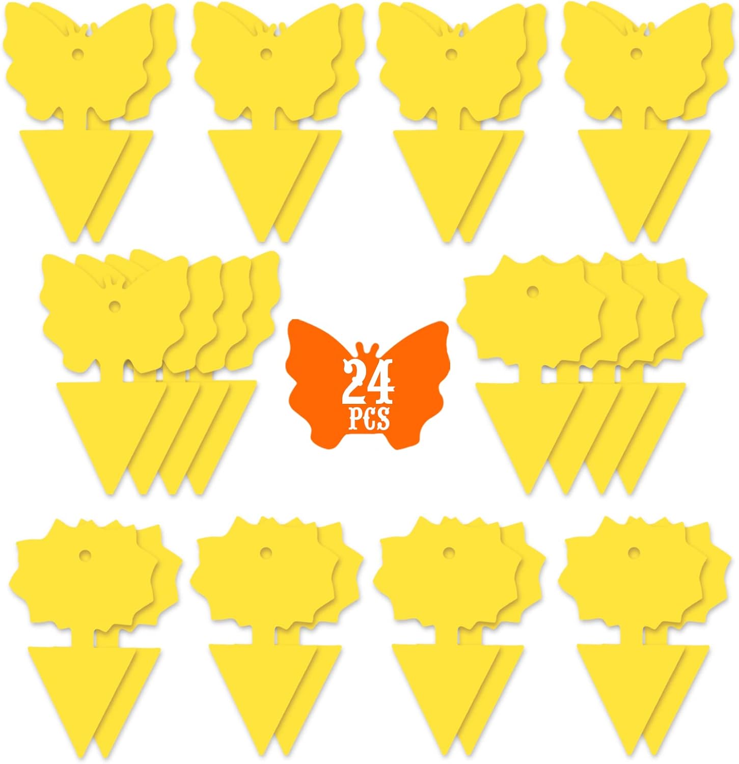 24PCS Fruit Fly Sticky Traps, Fungus Gnat Traps Insect Trap for Plants Kitchen Indoor and Outdoor(24 Light Yellow)