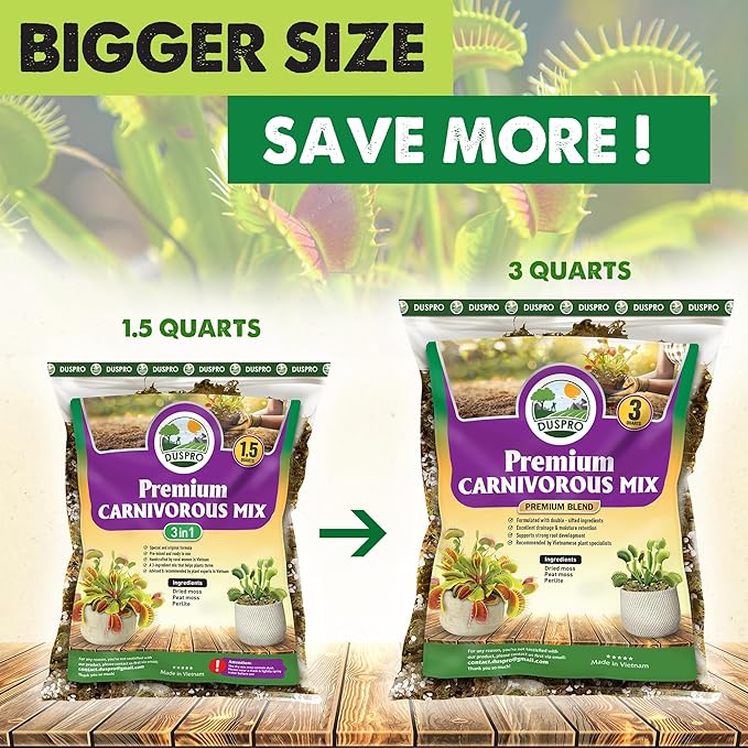 DUSPRO Carnivorous Plant Soil Mix 1.5QT-Include Forest Moss, Peat Moss, Perlite Potting Mix for Carnivorous Plants, Carnivorous Plants, Pitcher Plant, Butterworts, Sundews - Carnivorous Plant Food