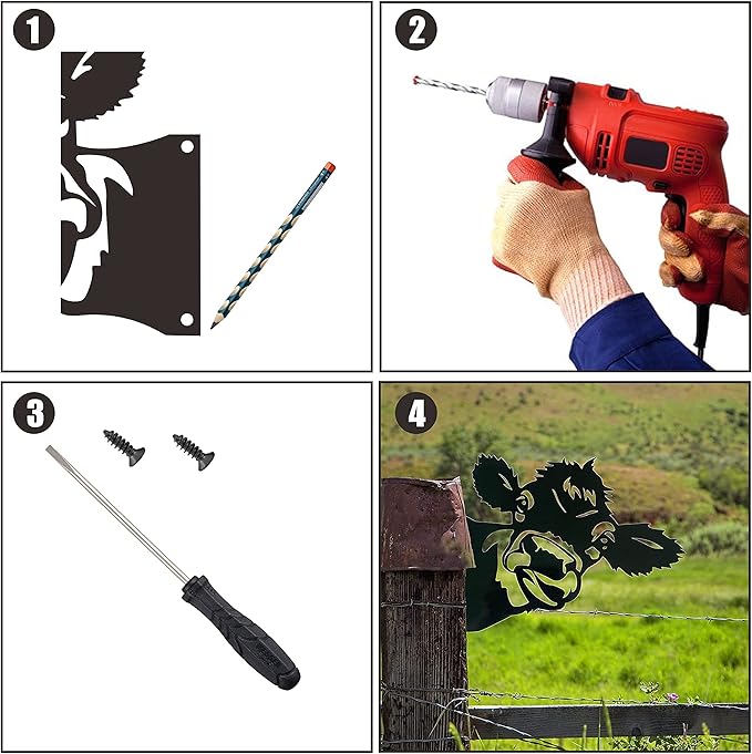 - Easy to Use--The end of these cow yard art stakes is with two srews tip,which can be easily inserted into the with a small force and not easy to loosen.