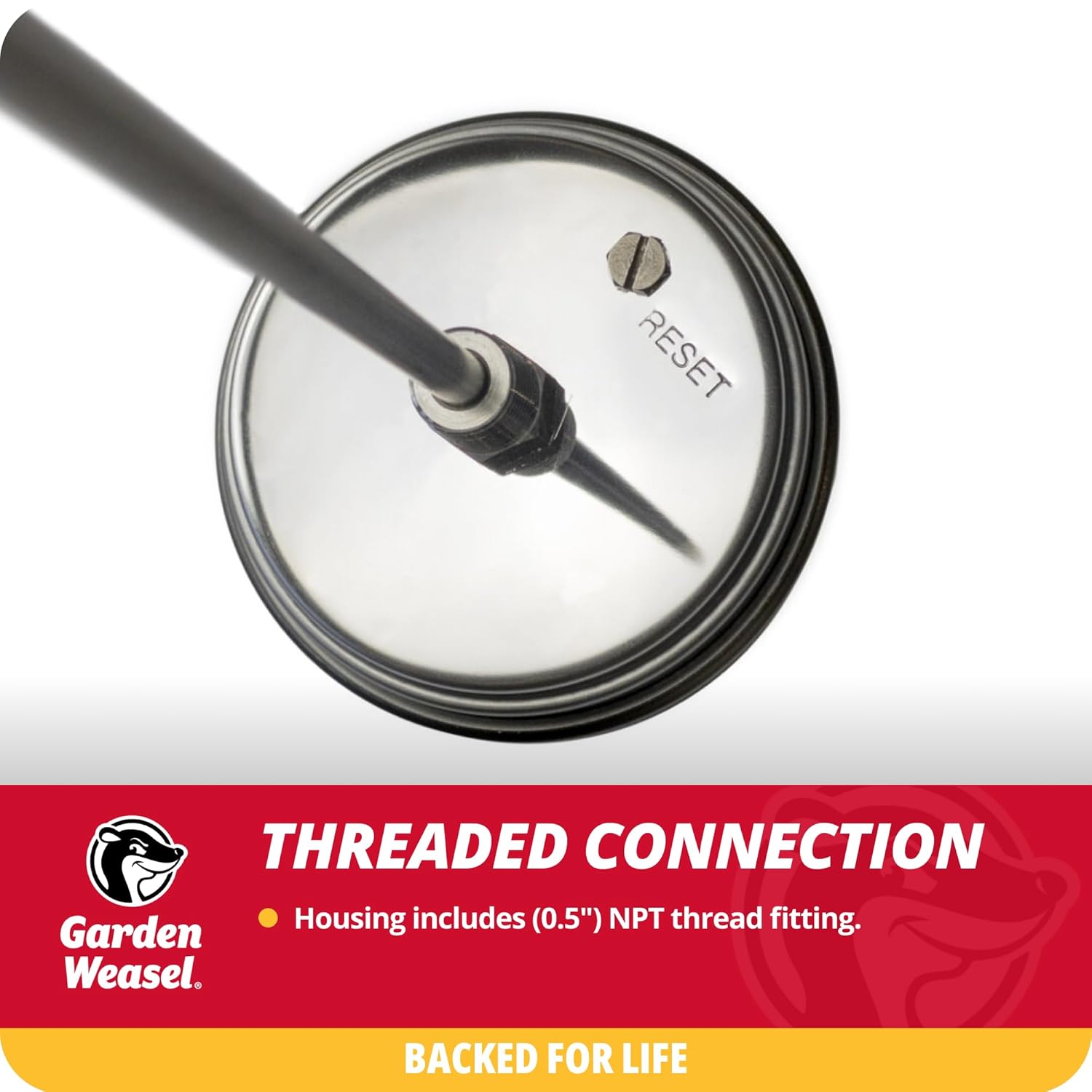Garden Weasel Analog Soil & Composting Dial Thermometer - 36-Inch Probe | Measures 0 to 220 Degrees Fahrenheit | Soil Temperature, Worm Compost | 98001-A