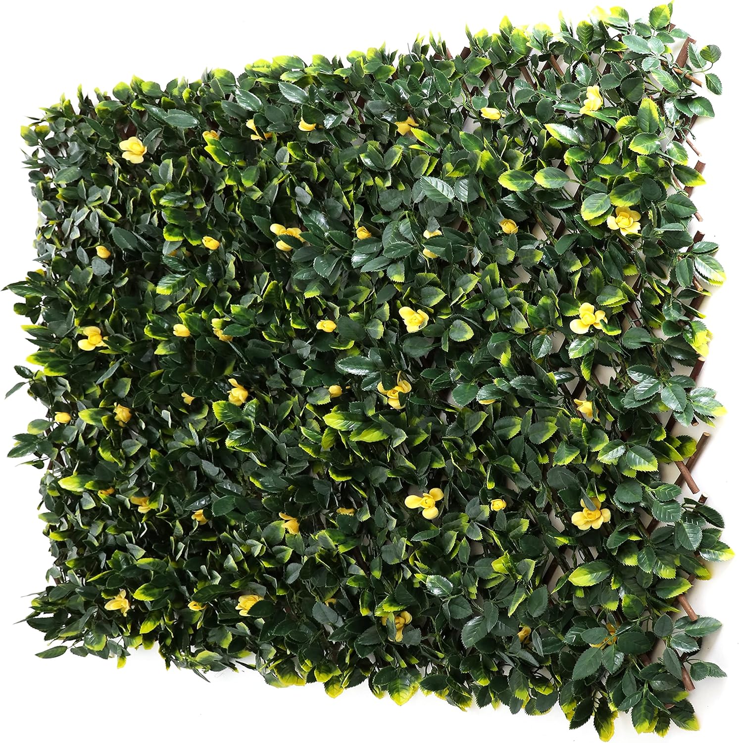 3rd Street Inn™ Leaf Trellis - Bamboo Greenery Panel - Boxwood and Ivy Privacy Fence Substitute - DIY Flexible Fencing (1, Yellow Rose Rattan)