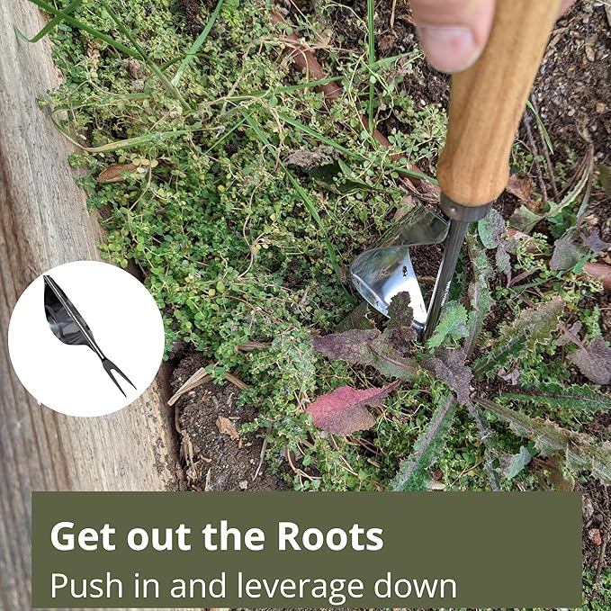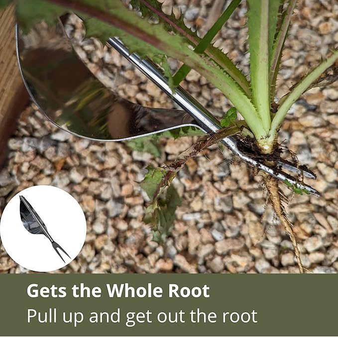 - Weed Pulling Tool - Thick fork gets under plant to dig out the entire root. Use the leverage arm to pop out the weed. Great dandelion, crabgrass and goats head weed puller for your lawn and garden.