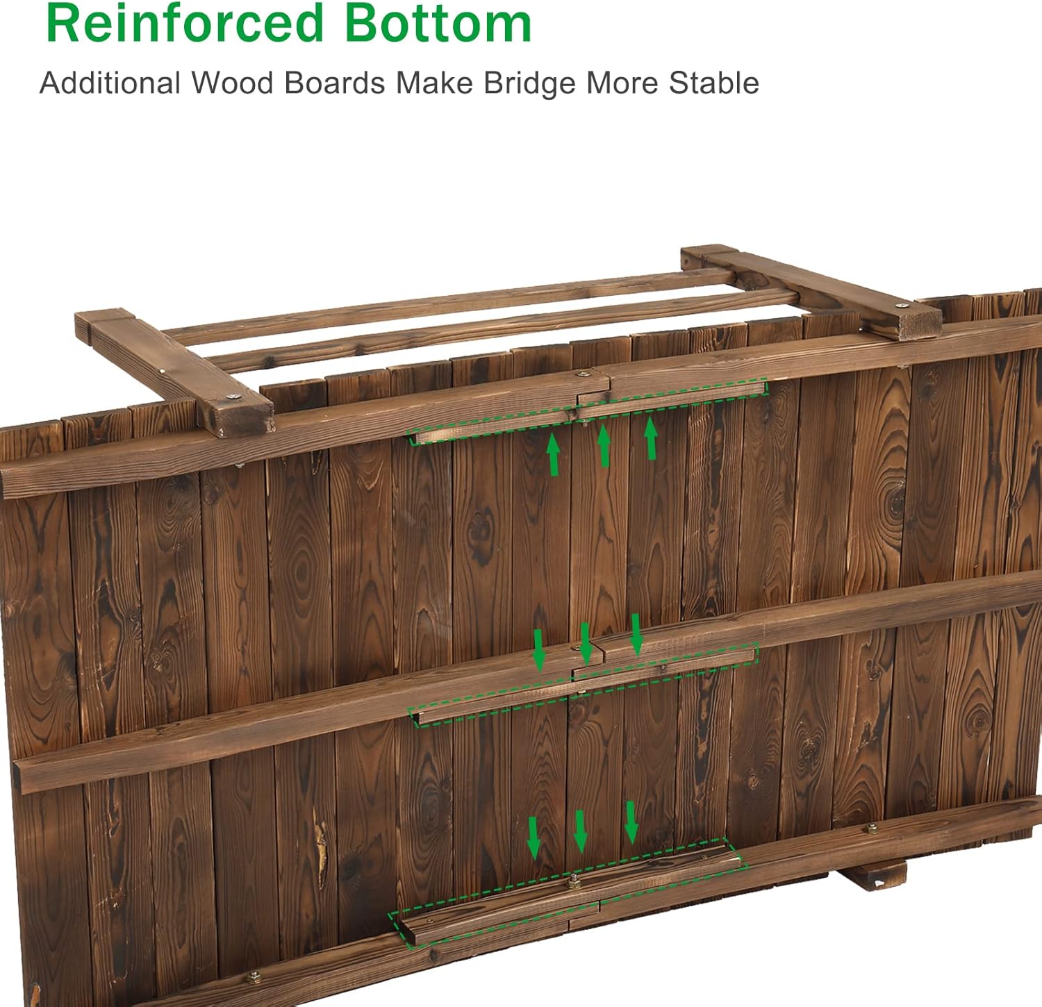 - ✔ [Solid Construction] Additional 3 wood boards reinforced the bottom, which make wood bridge more stable. Max weight capacity up to 400 lbs.