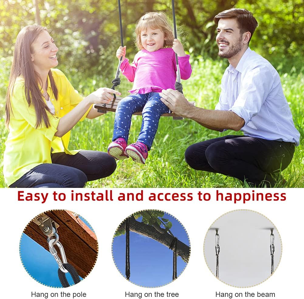 - EASY INSTALLATION: No hardware tools are required to install this swing set, installation is very simple! First, choose sturdy hardwood branches - oak is ideal! Avoid choosing fruit trees, evergreens, or trees that crack easily. Then, tie the rope or straps from the hanging kit to the branch, adjust to the angle you want, and you're done! Add endless fun to your backyard!