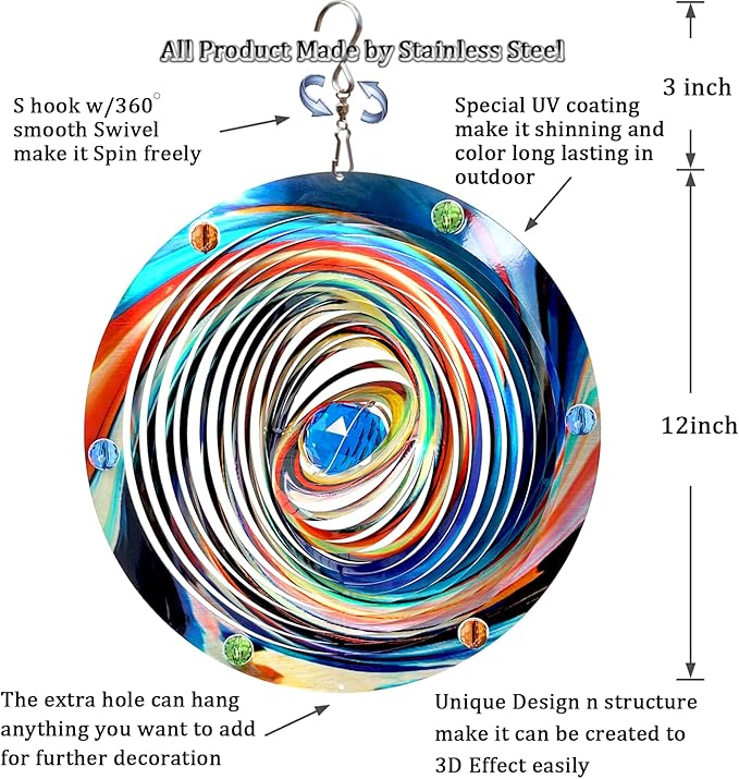 - 【Vivid reflective color】wind spinners are individually hand painted by epoxy protective coating with colorful sparkle powder inside to highly resist weather and rust. -Meanwhile,the reflective colorful glitter material gives off a sparkling, captivating and magical 3D visual effect, its beautiful light reflecting and attractive view whatever in night or day, wherever room or garden.