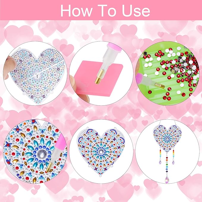- 【3 PACK DIAMOND AND PAINTING KEYCHAIN】:1PCS Moon diamond and painting suncatcher + 1PCS Tree diamond and painting suncatcher + 1PCS Heart diamond and painting suncatcher.(This is DIY unfinished product.)