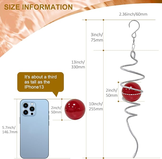 - 【 Widely Use Hanging Decoration 】The decorative spiral tail measures 13 inch high and weighs only 0.5 pounds, this versatile hanging spiral wind spinner can be hung indoors and outdoors. This hanging ornament has spectacular appeal and stunning effects that will mesmerize and inspire you as you gaze at the decor spiral tail. This hanging decor is the perfect addition to any home garden or yard, and can also be used to decorate shops, windows, Christmas trees, etc..