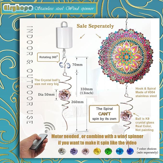- 【 3D Wind Spinners Stabilizer 】The wind spinner spiral with a 360° swivel hook is easy to hang. Our wind spinner crystal tails are gorgeous additions to our range of 3D wind spinner accessories. Attached to the bottom of kinetic wind spinner, which adds another dimension to the overall look, also helps provide stability on windy days. Since the Wind Spinner Stabilizer Spiral Tail can't spin on its own, add a wind spinner motor (not included) to help it spin.