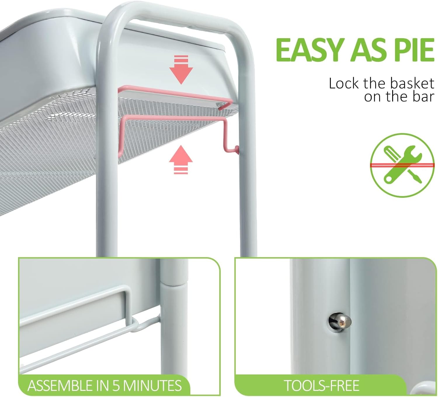 - 【Easy Assembly & Sturdy Built】This Toolf rolling cart is easy to assemble. The cart doesn't require any screw and take only minutes to install. The heavy-duty metal frame and rust-resistant coating makes it even more durable. The bathroom cart on wheels can hold up to total 132lbs.