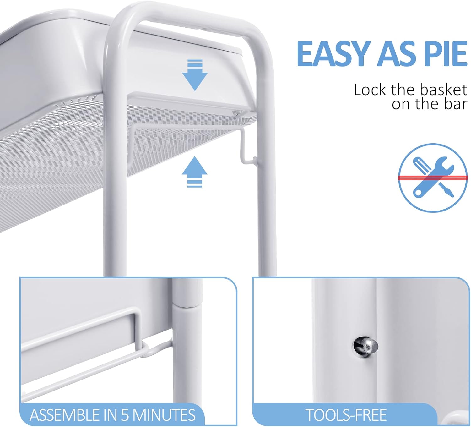 - 【Easy as Pie & Sturdy Construction】Are you still troubled by watching various screws can't start? But not this time. The rolling cart assembly does not require any screws and takes only a short time. The heavy-duty steel frame and rust-resistant powder coating makes it durable. The cart can hold up to total 132lbs.