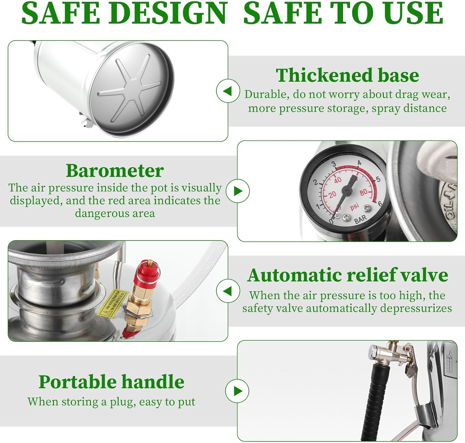 - 【EQUIPPED WITH PRESSURE RELIEF PROTECTION VALVE】-The bleach sprayer can be in the case of too much air will automatically vent pressure relief, can avoid the risk of pot burst due to the pressure is too large, Built-in fast and accurate pressure gauge, suitable for the actual needs of industry, agriculture, commerce and medicine