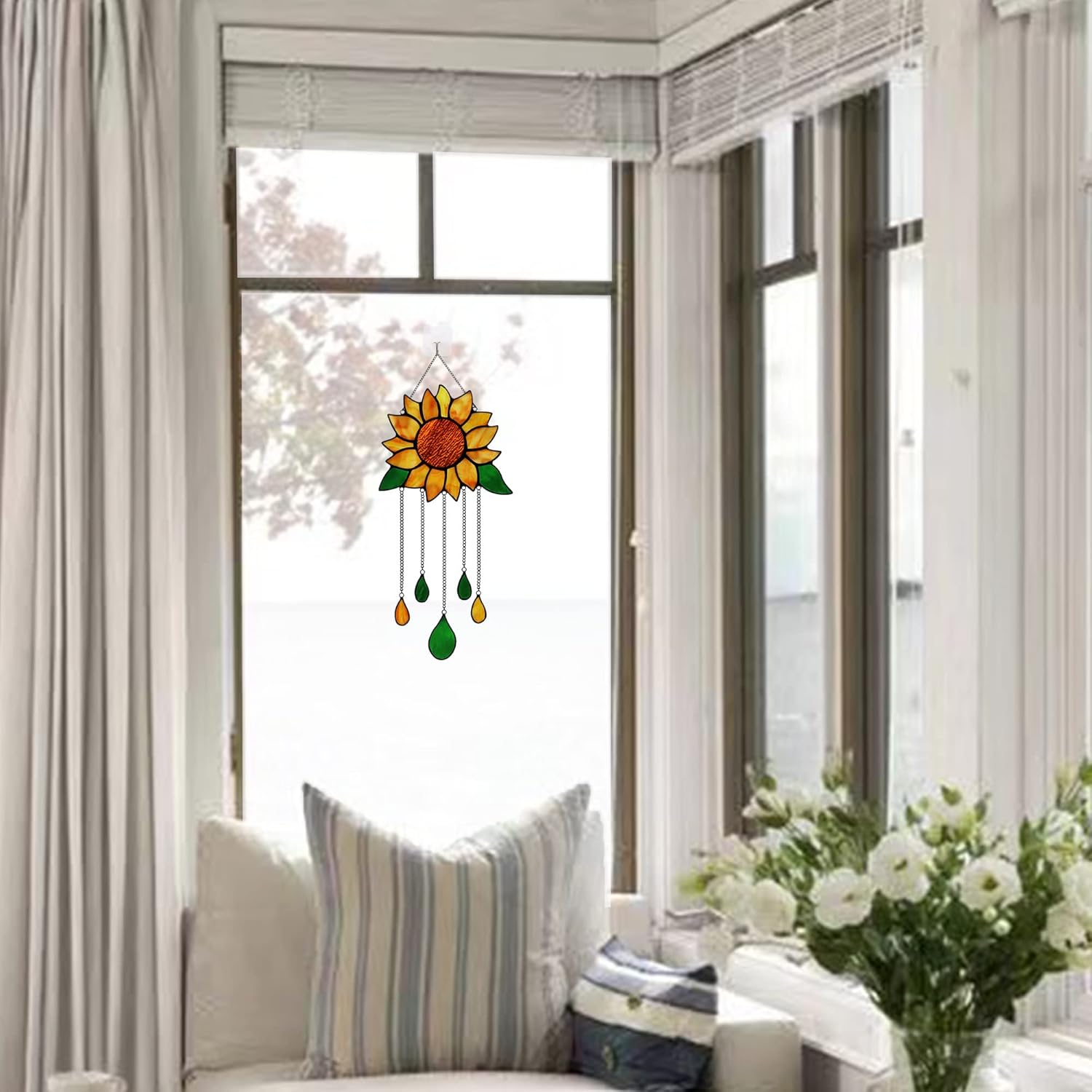 - Sunflower Suncatcher for Window: Made of real stained glass, hanging on the window, when sunlight shines on stained glass sunflower, you can get colorful sunshine on the windows, it's very beautiful! It is the best choice for home decoration.