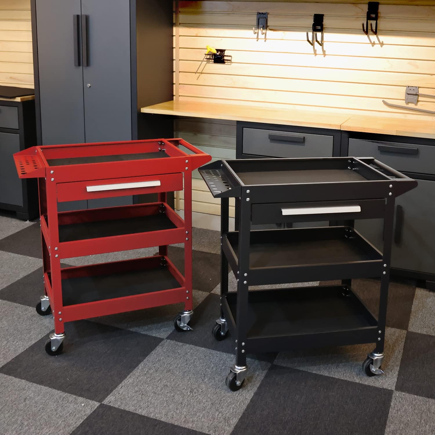 GSTANDARD APTB311R Torin Rolling Tool Cart with Drawer: 3 Layer Tool Oragnizer with Foam Pad and Heavy Duty Utility Cart with Four Swivel Casters, Red
