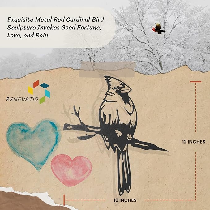 - ARTISTIC METAL BIRDS YARD DECOR: Enhance your backyard decor with this lifelike metal bird decoration. Measuring 12" high and 10" wide, it's a perfect addition to your garden art and garden decor. These beautiful yard ornaments bring charm and elegance to your outdoor space. Make your garden shine with this exquisite outdoor cardinal decor.