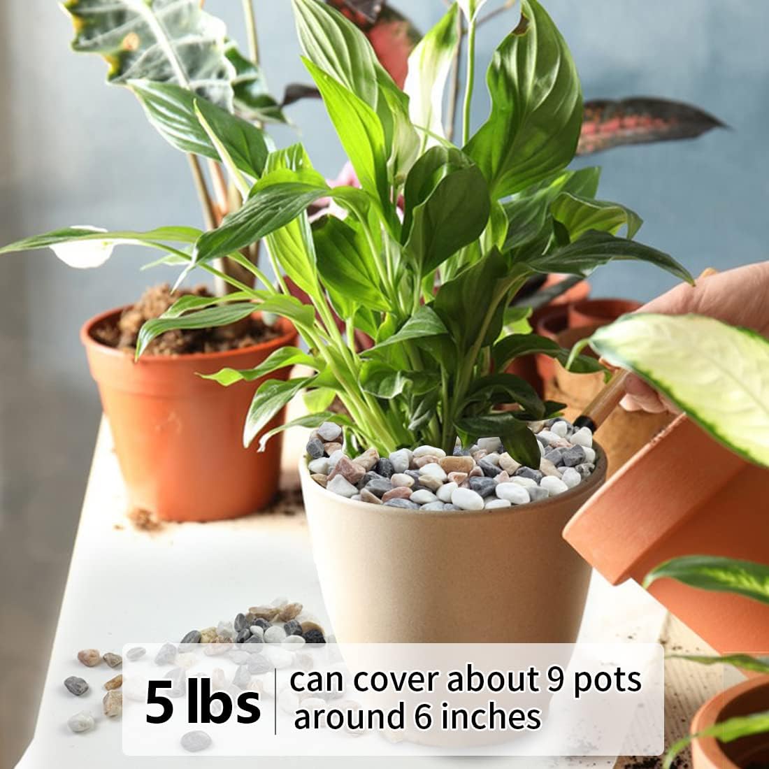 - 【Gravel Pebbles Size】These stones are packaged in a 5 pounds bag. The size is about 1/5 inch, it is perfect for succulent and cactus plants, as well as any vase or terrarium