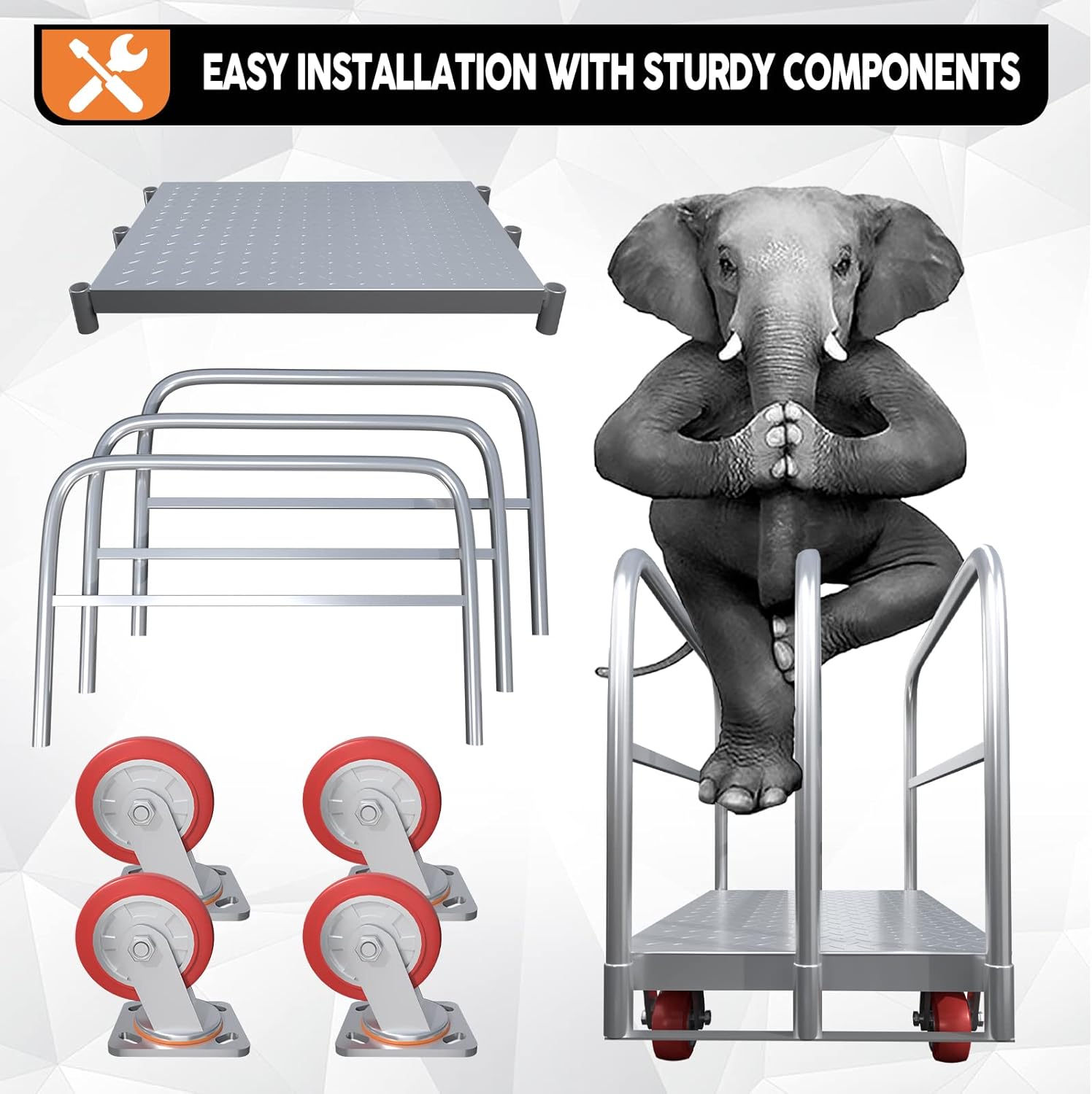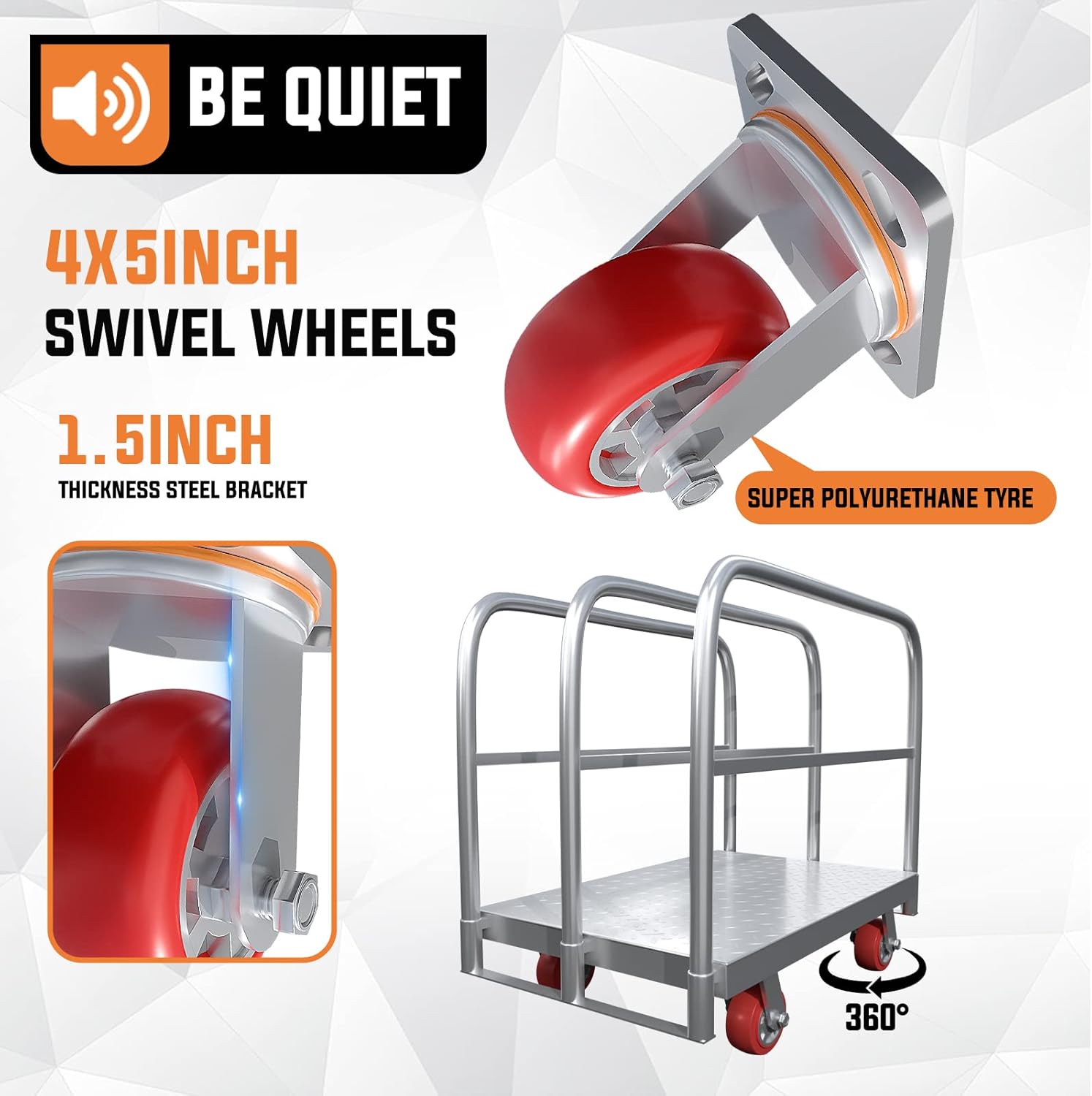 Steel Panel Truck Cart, Platform Truck, Heavy Duty Lumber Drywall Dolly, Flatbed with 2500 lbs Capacity and 4 Swivel Casters, 36x24inch Steel Board with 3 Side Handrails