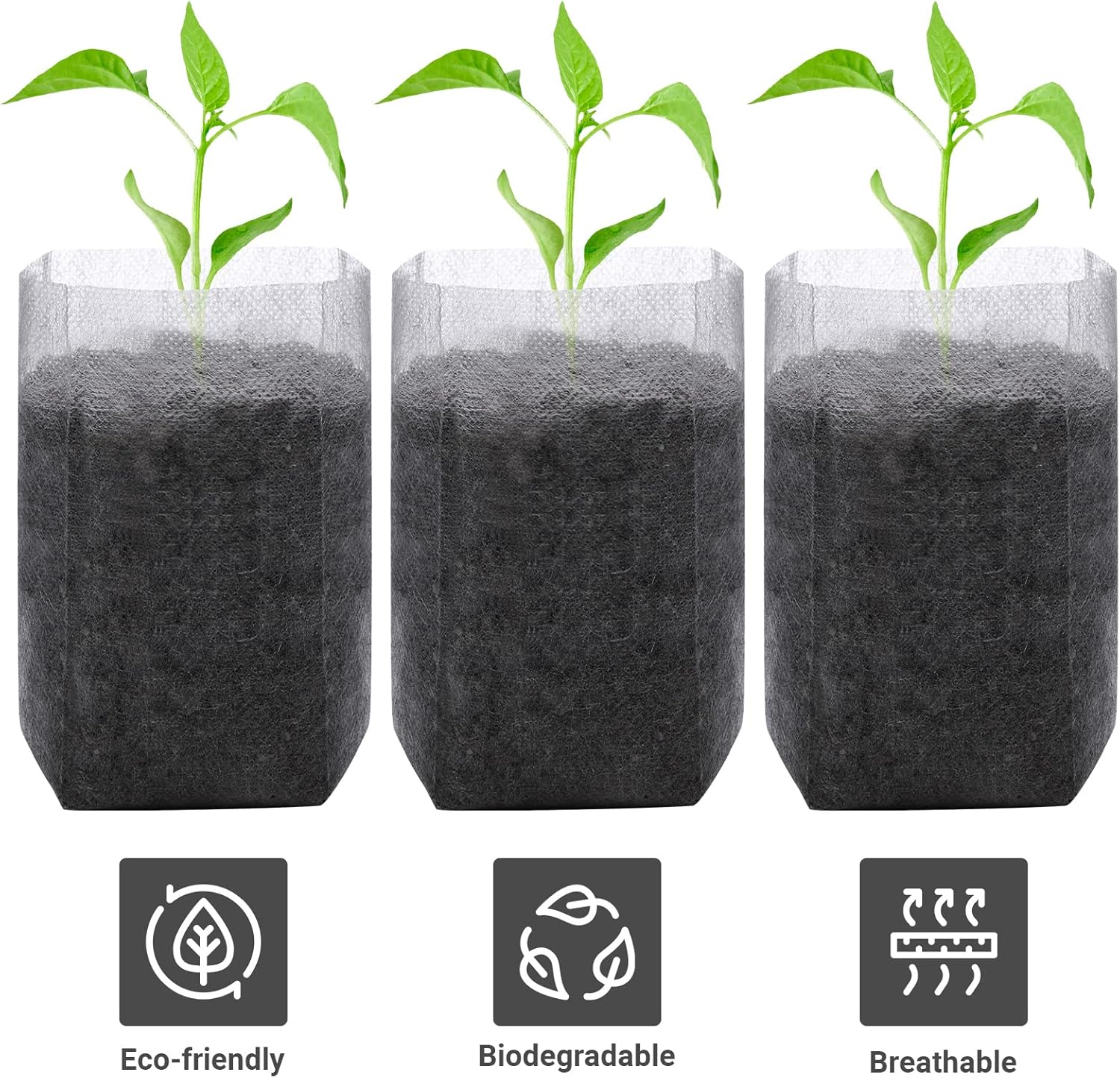 - 【PREMIUM MATERIAL】The plant nursery bag is made of high-quality non-woven material, eco-friendly breathable and biodegradable, can be planted directly into the ground and garden.Great for new starters use.