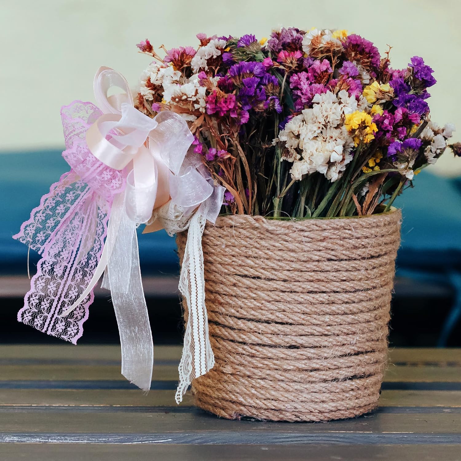 - 【SOFT BUT THICK ROPE】Twisted 4 strands natural fiber. Constructed from long, soft, shiny vegetable fibers. The jute string rope are soft but thick enough to give them high strength and make the wired twine more durable than ordinary strings, comes with high tensile strength, low extensibility, and ensures better breathability.