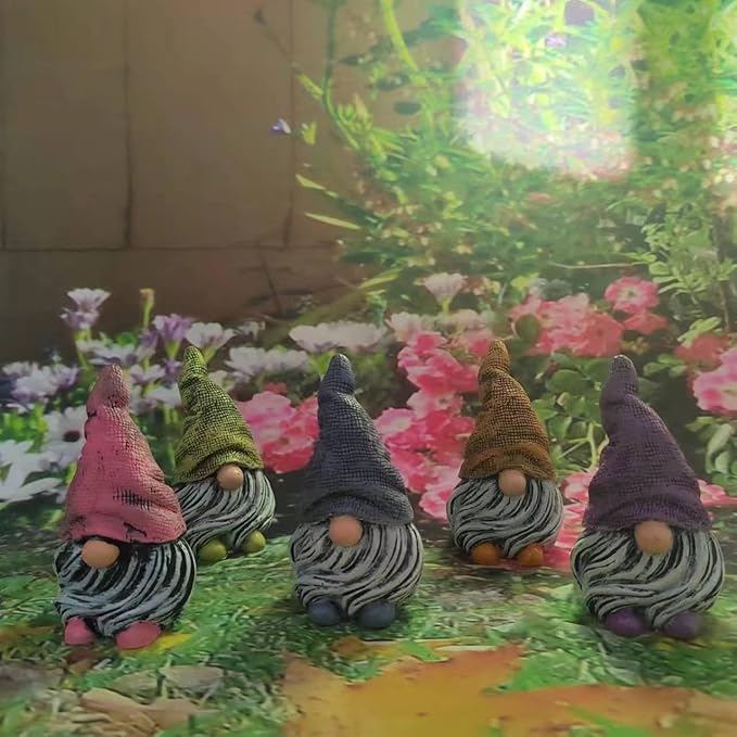 Mini Gnomes Figurines 5pcs,Gnomes Decorations for Home,Fairy Garden Accessories,Mini Garden Gnomes for Plant pots,Resin Little Gnomes for Fairy Garden,Dwarfs Statue for Fairy Garden-Yard-Home Decor
