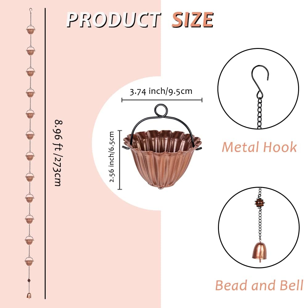 - Unique Design: The rain chain is composed of 12 exquisite handmade golden flower cups. The rain water chain can effectively guide the rainwater, bringing a different visual effect and decorate the eaves.Can be used as an optional alternative to the traditional rain gutter system