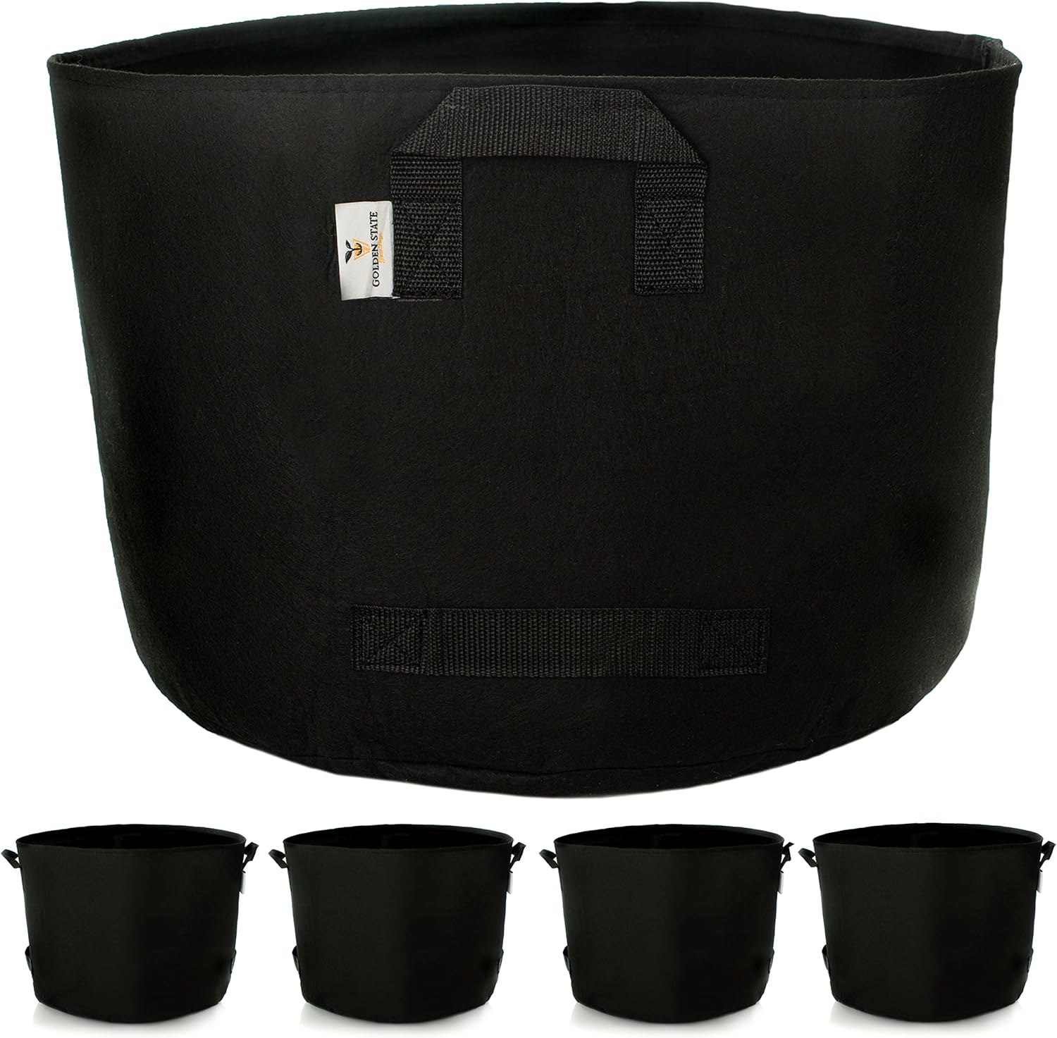 Grow Bags: 5-Pack (Size: 15 Gallon): 300gsm Black Felt Fabric, Biodegradable and eco-Friendly Material. (Handles + Dumping Handles-pat.Pend).