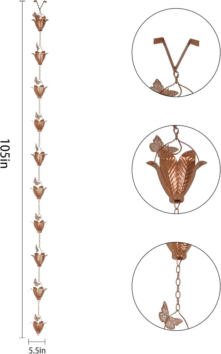 - Decorate Your House and Outdoor Garden with the Unique Rain Chain (Flower Cups with Butterfly) Replace Gutter Downspout & Divert Water Away from Home for Stunning Fountain Display