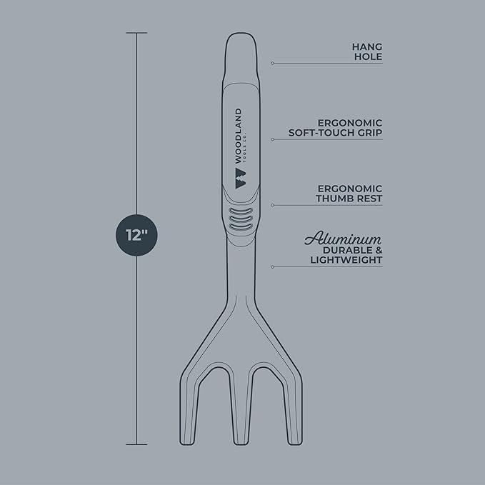 Woodland Tools Heavy Duty Hand Cultivator, 3-Prong Garden Claw Tiller Tool with Anodized Aluminum Head and Soft Ergonomic Grip, Manual Soil Cultivator for Weeding, Digging, and Breaking Up Dirt