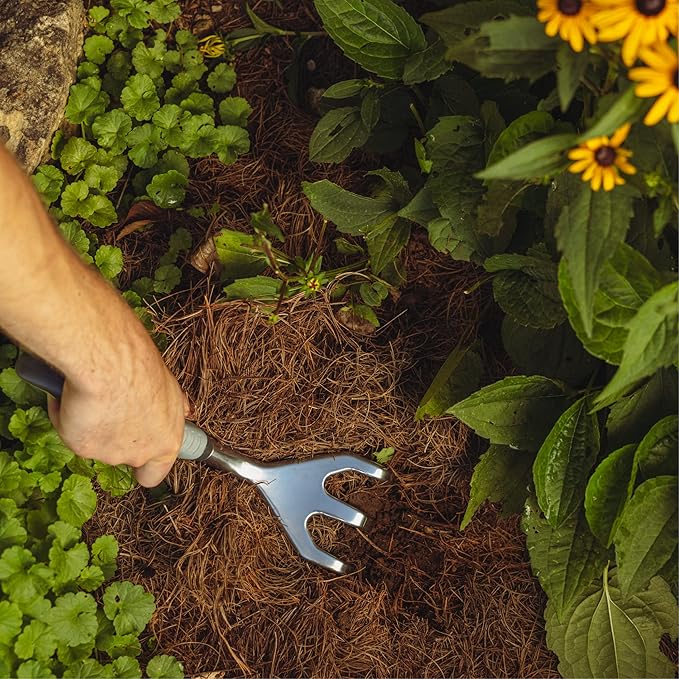 - BREAKS UP SOIL FAST Three strong, sharpened tines dig and loosen dirt for better aeration and water flow. Perfect for prepping garden beds, turning compost, and mixing in soil amendments.
