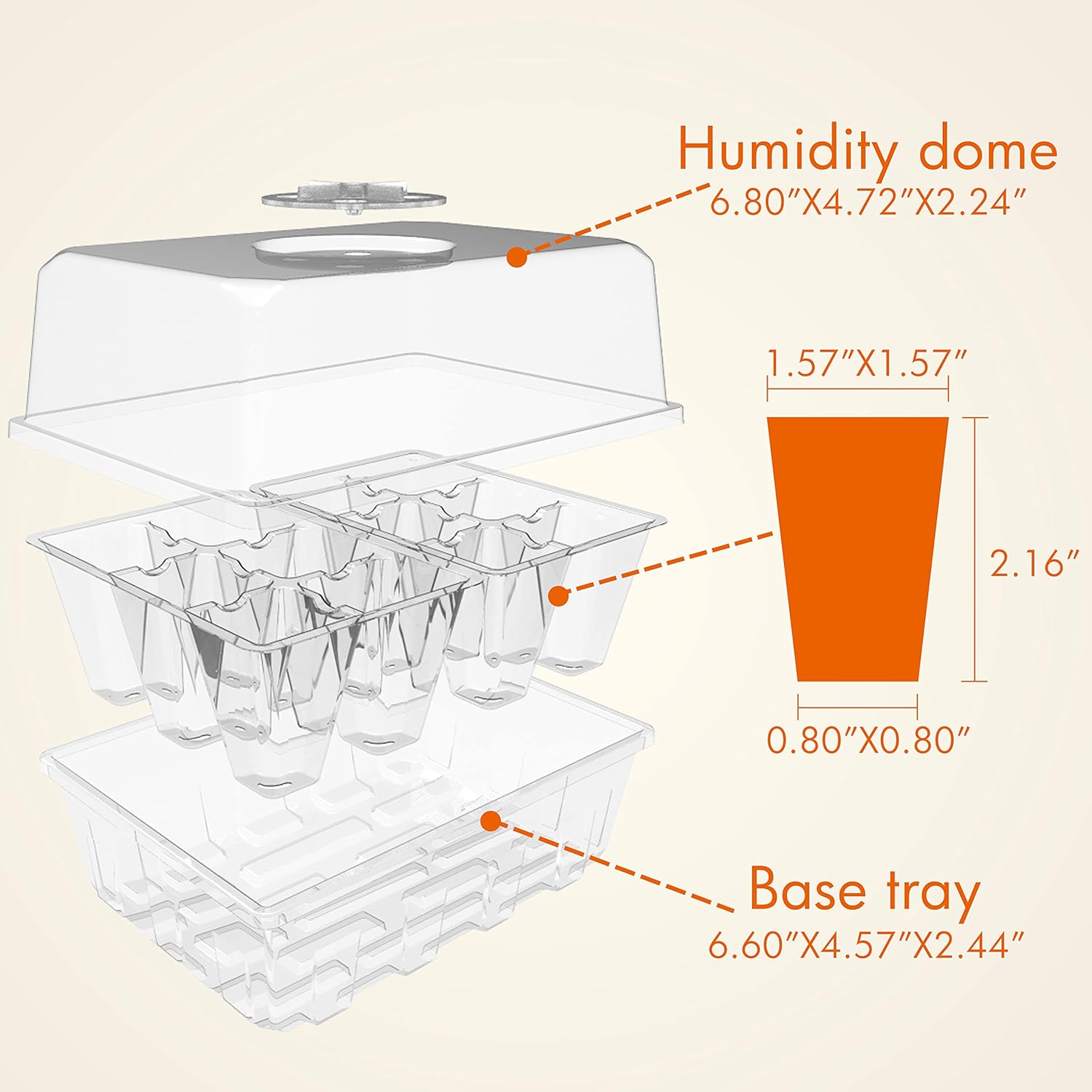 - Perfect Size for Seed Starting - The seed starter tray is designed with the perfect size for seed starting. Each cell in the tray measures 1.5"x1.5"x2.25", while the base has dimensions of 7.5"x5.5"x2.4". This ensures that your seeds have plenty of room to grow and develop into healthy plants.