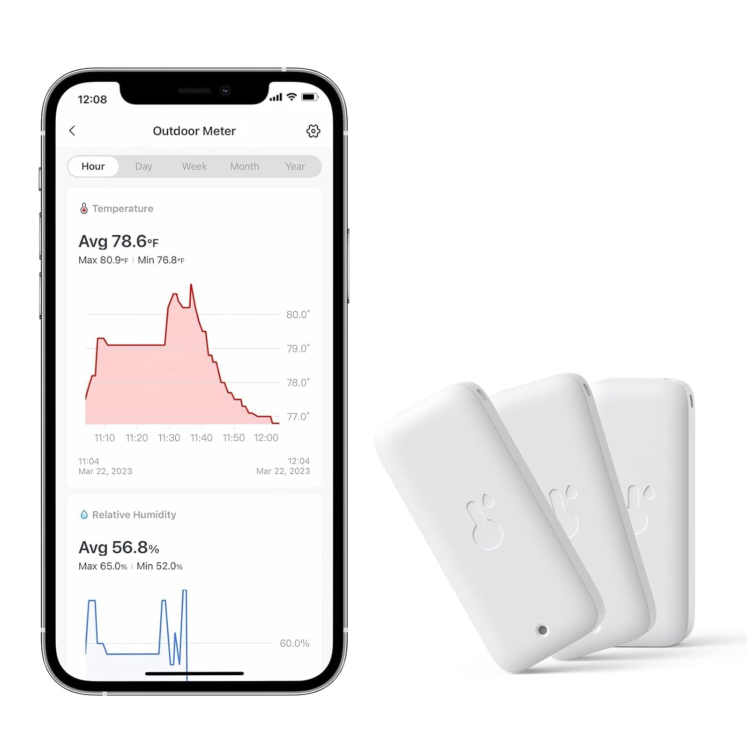 - Smarter Push Notifications (SwitchBot Hub required): Our hygrometer now supports Dewpoint, and VPD readings with absolute humidity as well as classic temperature and humidity readings that can be used as Scene conditions. When used with a SwitchBot Hub, should any preset value be exceeded, our app can push a notification alert to allow you to react in real-time to changes in freezer, wine cellar, instrument case, attic, basement, crawlspace, reptile tank, terrarium, and more.