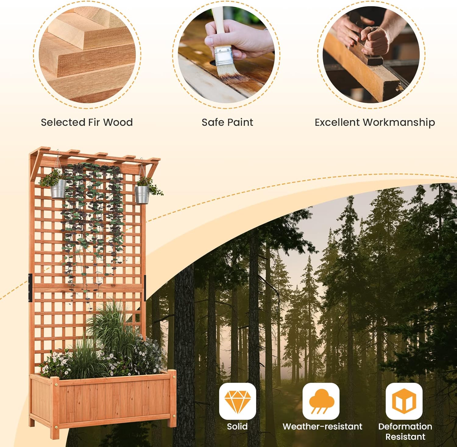 - [Gifted form Nature]: Crafted with fir wood and coated with safe paint, the raised garden bed with trellis is crack-resistant, not easy to deform and waterproof, thus ensuring excellent durability. Besides, the thick wood frame and reinforced metal connection guarantee large load bearing of 66 lbs.