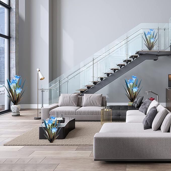 Homight Metal Agave Plant Outdoor Decoration Outdoor Garden Decoration Lily Mexican Yard Art Plant Garden Agave Lily Decorative Garden Gift… (3 Big Blue Lilies) (HM-390-345)