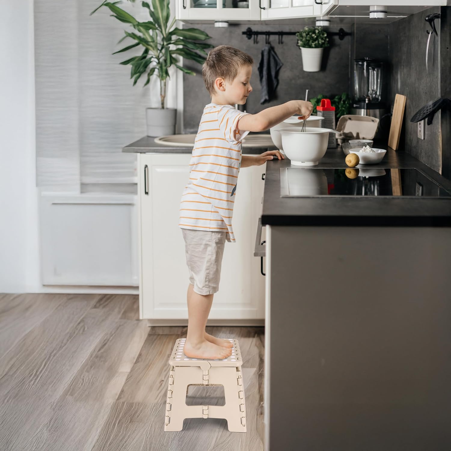 Delxo Folding Step Stool,9 Inch Lightweight Plastic Stepstool,Portable Collapsible Foldable Step Stool Non Slip Folding Stools for Kitchen Bathroom Bedroom in Khaki,1 Pack